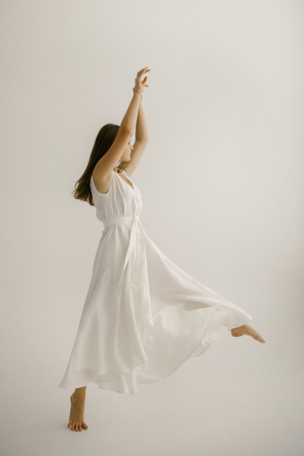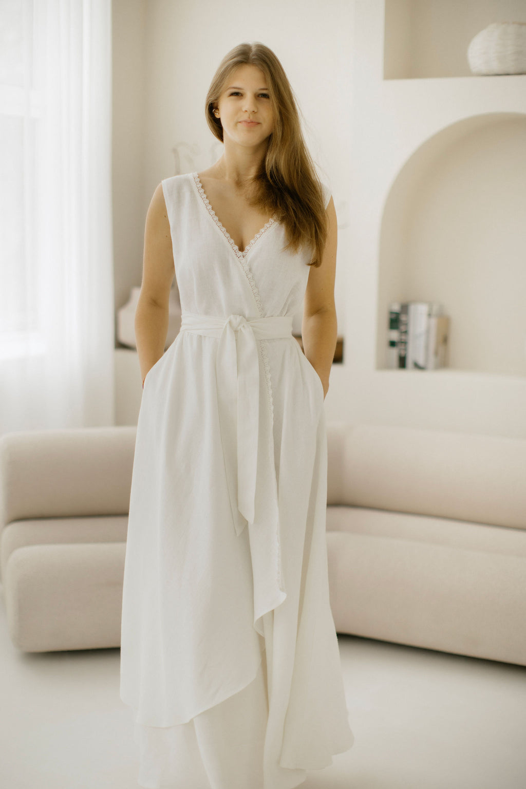 • Long linen belt — can be wrapped once or twice and adjusted to your liking